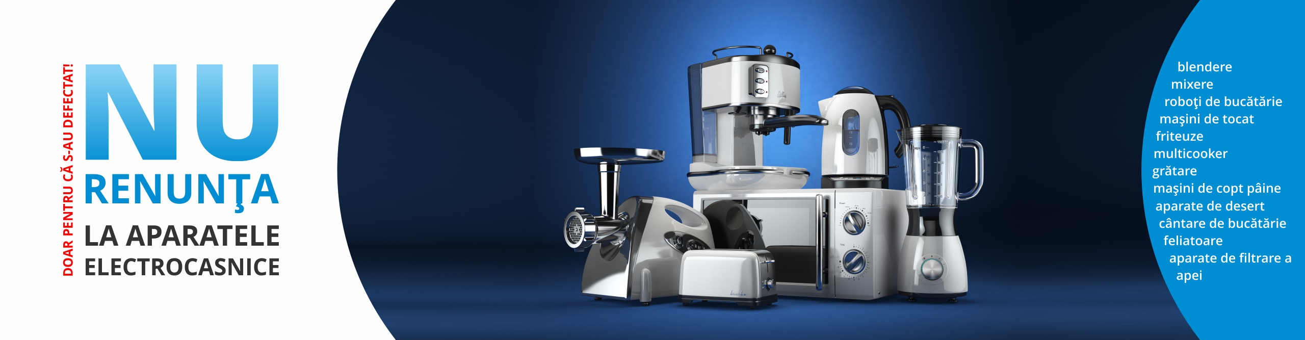 Aparate de gătit: blendere, mixere, roboți de bucătărie, mașini de tocat, friteuze, multicooker, grătare, mașini de copt pâine, aparate de desert, cântare de bucătărie, feliatoare, aparate de filtrare a apei, etc.